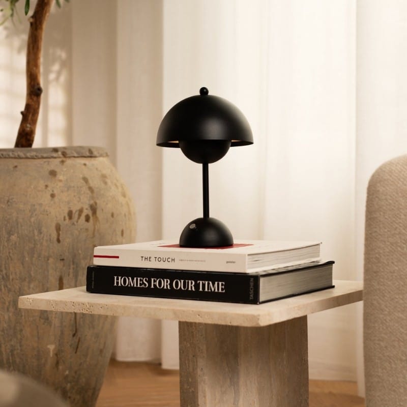 مصباح عصري محمول يمكنك وضعه بجانب طاولة السرير في الليل للإظافة جو هادئ لغرفة نومك، وكذلك يمكن استخدامها كزينة خلال النهار
